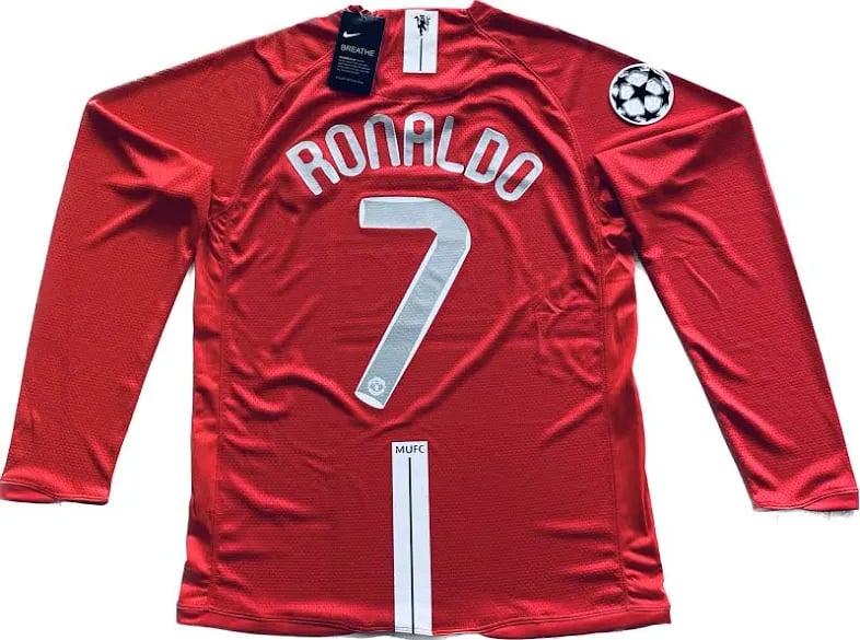 The Manchester United 2007-08 Home Jerseyis one of the most iconic shirts in football history. This was the season the "Red Devils" achieved the legendary Double, winning both the Premier League and the UEFA Champions League. This jersey represents the pinnacle of Cristiano Ronaldo’s first stint at Old Trafford—the year he scored 42 goals, won his first Ballon d'Or, and cemented his legacy as a global superstar.